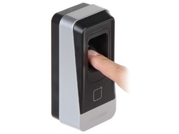 DS-K1T805MBFWX Терминал доступа со встроенным считывателем Mifare и отпечатков пальцев Поддерживаются функции СКУД Уровень защиты: IP65, IK08; Wi-Fi; Bluetooth. Хранилище: 10,000 карт, 3000 отпечатков пальцев; 100,000 событий; Web-интерфейс; Поддержка Hik-Connect; Связь канала: TCP/IP; Выходы: RS-485; Wiegand; Алюминий, 177х58х35 мм