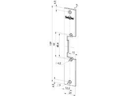 YS-136NO-S (С питанием открыта) Врезная электромеханическая защёлка усиленная, американского стандарта. Короткая планка с датчиком состояния двери, сила удержания до 1000 кг. Питание: 12В/320мА. Материал: нержавеющая сталь. Размеры: 124 х 43 х 42 мм.