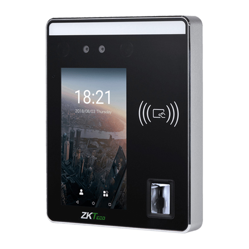 Биометрический терминал СКУД с распознаванием лиц (память шаблонов 6 000) на больших расстояниях и встроенный считыватель (память шаблонов 10 000) и RFID карт. Терминал на ОС Linux. Дистанция считывания увеличена до 3 метров, что позволяет идентифицировать быстро идущих людей. В то время как большинство алгоритмов поддерживают под углом не более 15 градусов распознавание, оборудование ZKTeco поддерживает распознавание лиц под углом до 30 градусов.