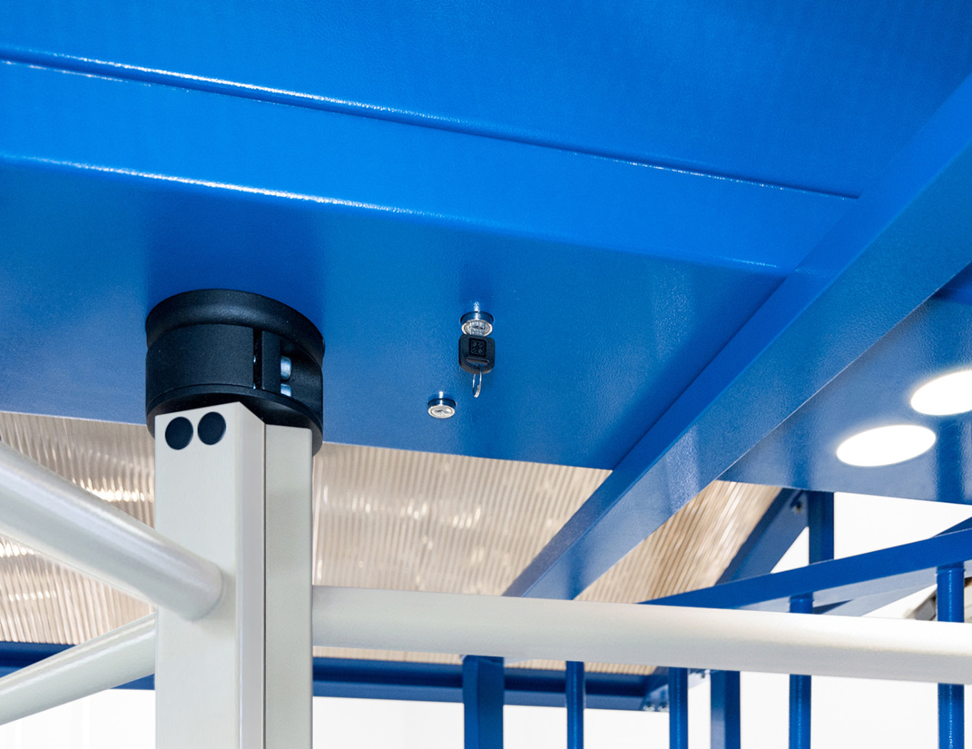 Наличие 4-х встроенных замков механической разблокировки (для каждого направления прохода свой замок), позволяет, при необходимости (например, в случае отключения электропитания), оперативно открыть турникет для свободного прохода с помощью ключа.