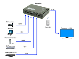 16 февраля - 10 штSW-Hi5012 SW-Hi5012 Коммутатор сигнала HDMI (5вх./1вых.) с поддержкой HDMI 1.4, HDCP 1.2. Разрешение до 4Kx2K(30Гц). Вх. - HDMI(A)x5/Роз.1,7х4мм(DC5V). Вых. - HDMI(A). В ...