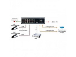 SW-80802(150W) PoE коммутатор Gigabit Ethernet на 8 RJ45 + 2 SFP порта. Порты: 1 x GE (10/100/1000Base-T) с PoE (до 60W, A+B) + 7 x GE (10/100/1000Base-T) с PoE (до 30W), ...