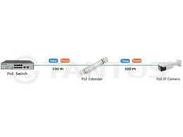 TSn-EPOE-U Уличный PoE удлинитель. Предназначен для увеличения расстояния передачи 10/100 Ethernet + PoE по кабелю витой пары дополнительно на 100 м. Для работы TSn-EPOE-U не требуется дополнительных блоков питания. PoE удлинитель питается от того же источника, что и оконечное оборудование, что значительно облегчает проектирование и монтаж системы.