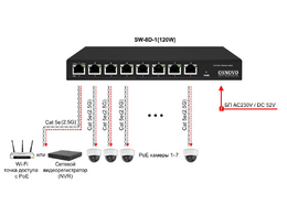 SW-8D-1(120W) PoE коммутатор 2.5G Ethernet на 8 RJ45 портов. Порты: 1 x 2.5G (10/100/1000/2500Base-TX) с PoE (до 90W, A+B) + 7 x 2.5G (10/100/1000/2500Base-TX) с PoE (до ...
