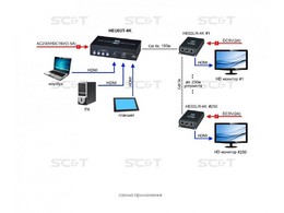 HEU03T-4K Коммутатор-передатчик HDMI сигнала по витой паре (CAT5e и выше). Поддерживает разрешение 4K(4096x2160, 30Гц). Расстояние передачи 4K(30Гц) до 150м. Вх.-HDMI(тип ...