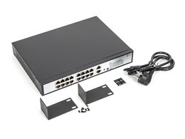 DS-3E1318P-E 16 RJ45 100M PoE с грозозащитой 4кВ, 1-8 порты с высоким приоритетом; 2 RJ45 1000M PoE; 2 1000М SFP порта; таблица MAC адресов на 4000 записей; пропускная сп ...