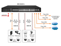 5 февраля - 8 штSW-32G4X-3L Управляемый L3 PoE коммутатор Gigabit Ethernet на 16xGE RJ-45 c PoE + 8xGE Combo (RJ-45 + SFP) + 4x1G/10G SFP+ Uplink. Порты: 16 x GE (10/100/1000 Base-T) с п ...