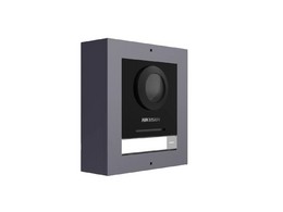 DS-KD8003-IME1(B)/Surface 2Мп IP вызывная панель c ИК-подсветкой, накладная 2 Мп камера типа Fish eye, WDR, BLC, DNR, H.264; Механическая кнопка вызова; микрофон и динамик; тревожные входы 4; 1 RS-485; 2 реле; 1 RJ-45 10M/100M/1000M Ethernet; DC12В/POE; 10Вт; -40 °C...+70°C; IP65; размер рамки 117×107×44мм; корпус: металл, модуль: пластик.
