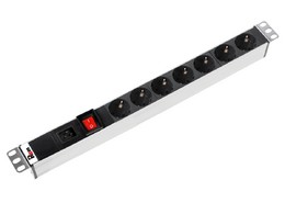 R-16-7S-V-440 Блок розеток Rem-16 с выкл., 7 Shuko, вход IEC 60320 C20, 16A, алюм., 19"