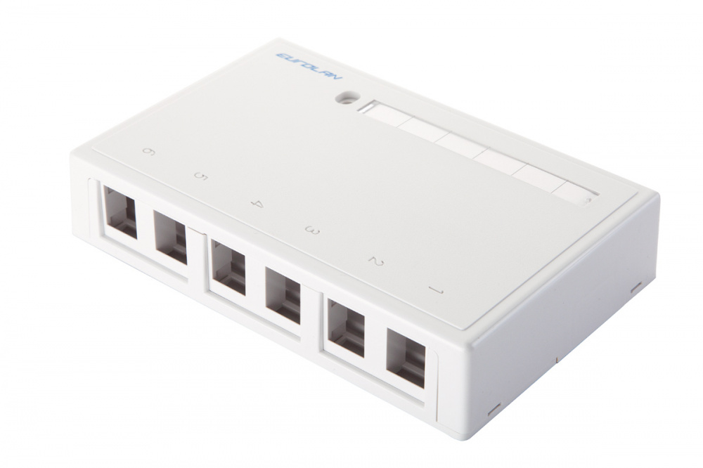 Настенная коробка 12B-00-06WT предназначена для подключения шести UTP-модулей.