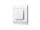 Выключатель двухклавишный Eurolan 16V-20-02WT размером 45 × 45 мм. Устанавливаются в рамки с суппортами Eurolan французского стандарта.