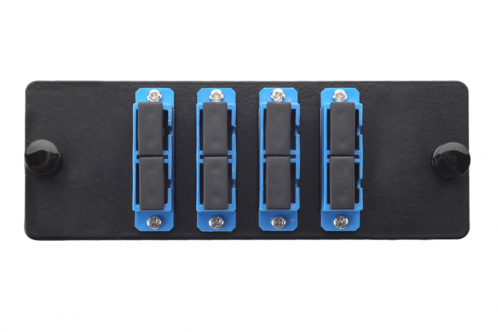 Планка Q-SLOT с проходными адаптерами, монтажными шнурами и КДЗС используется в составе некоторых кроссов для терминирования волоконно-оптического кабеля, а также для организации коммутационных полей в корпусах Q-SLOT.