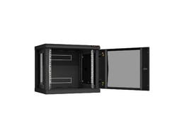 TWC-096060-R-G-BK Настенный разборный шкаф 19", 9U, стеклянная дверь, 503х600х600 мм, 2 пары монтажных направляющих, цвет черный.