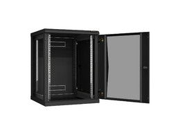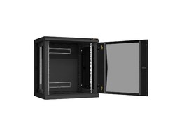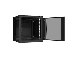 TWC-126060-R-G-BK Настенный разборный шкаф 19", 12U, стеклянная дверь, 636х600х600 мм, 2 пары монтажных направляющих,цвет черный.