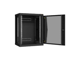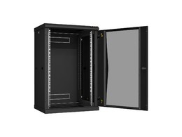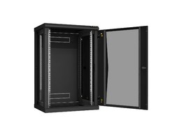 TWC-156060-R-G-BK Настенный разборный шкаф 19", 15U, стеклянная дверь, 770х600х600 мм, 2 пары монтажных направляющих, цвет черный.