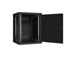 TWC-156060-R-M-BK Настенный разборный шкаф 19", 15U, металлическая дверь, 770х600х600 мм, 2 пары монтажных направляющих, цвет черный.