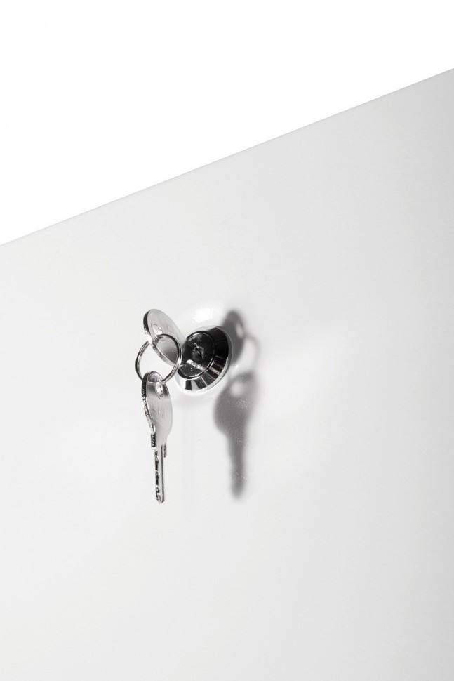 Шкаф комплектуется боковыми стенками. Стенки фиксируются точечными замками.
