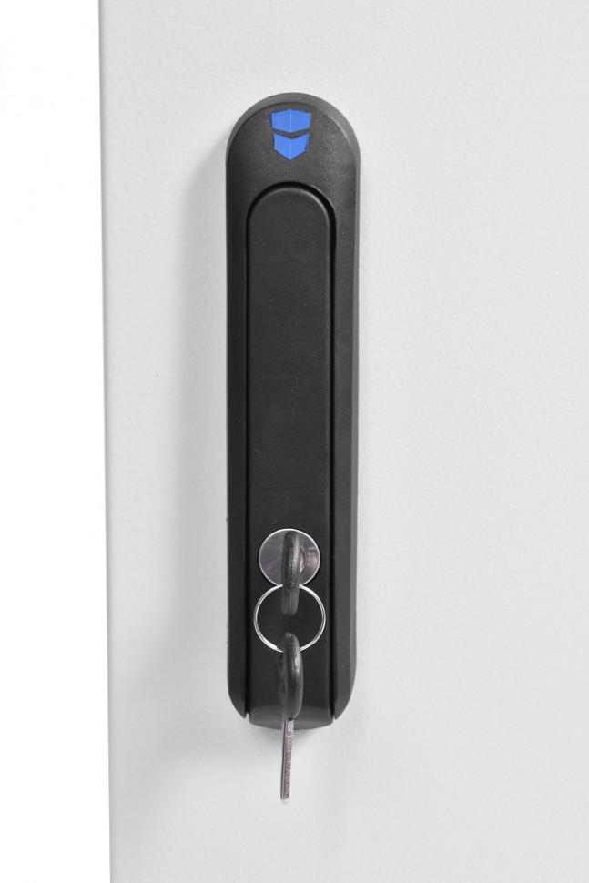 Стандартно шкафы комплектуются двумя дверями трех видов: цельнометаллической, с тонированным ударопрочным стеклом, и дверью с перфорацией. Двери фиксируются усиленными точечными замками, имеют как правую, так и левую навеску с помощью штырковых петель установленных в дверях.