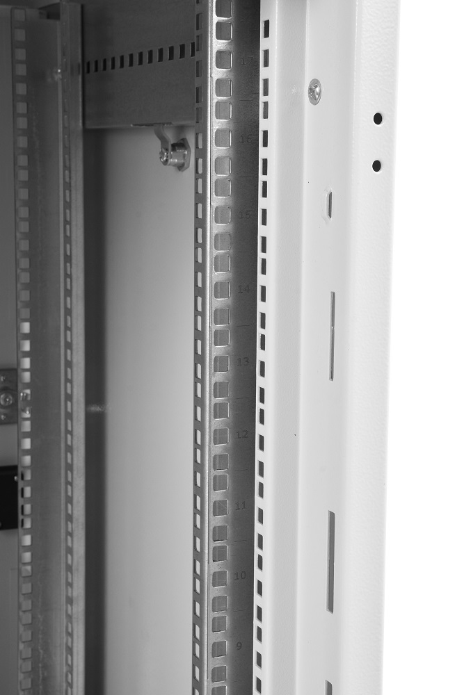 Стандартно шкафы комплектуются задней металлической стенкой, и тремя видами дверей: цельнометаллической, с тонированным ударопрочным стеклом, и дверью с перфорацией. Возможна комплектация двумя дверьми, исключающая заднюю стенку. В шкафах 18-38U, дверь фиксируется усиленным точечным замком, 42-47U ригельным. Двери имеют как правую, так и левую навеску.